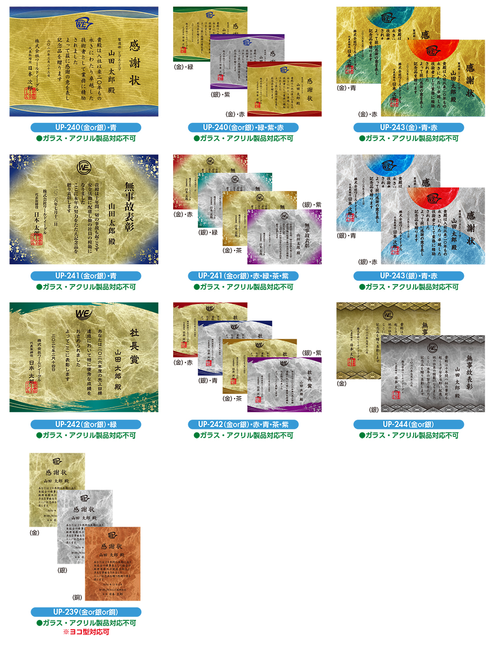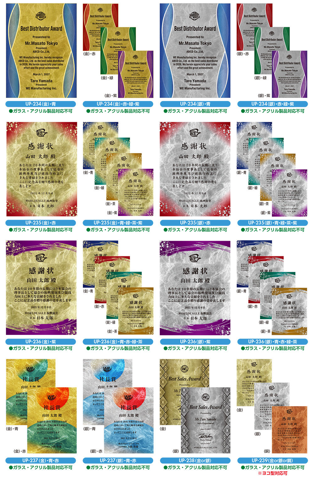 - 金箔調UV仕上げオーダー表彰楯 O-SHV-7901~7904