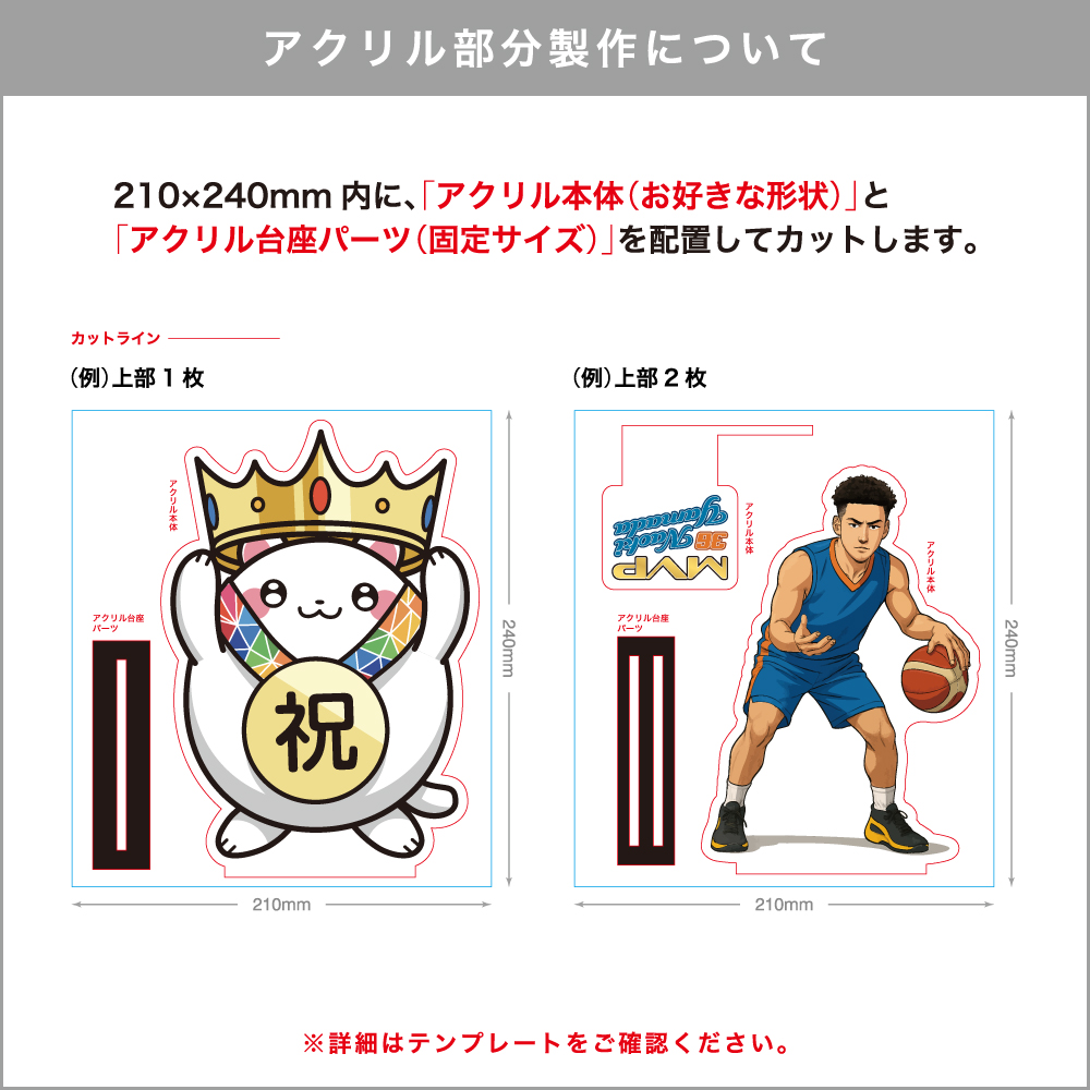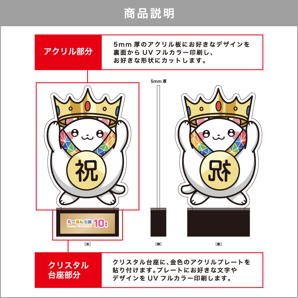 | 加工方法 | アクリル部分 【UVカラー印刷】裏面 台座のプレート部分 【UVカラー印刷】表面 |