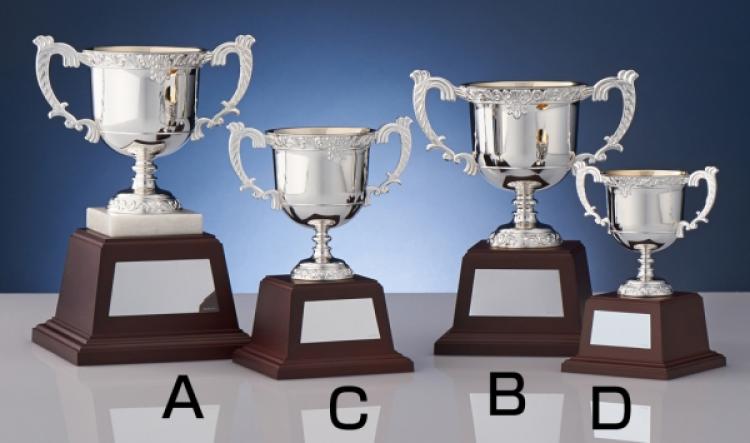 1.何十年もロングセラーの定番優勝カップ2.細かい装飾が入っているデザインカップ