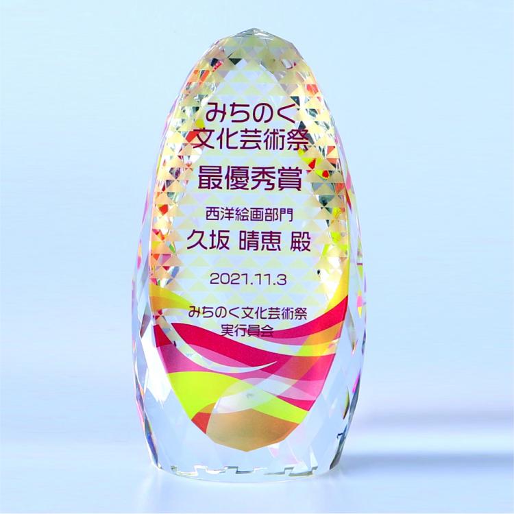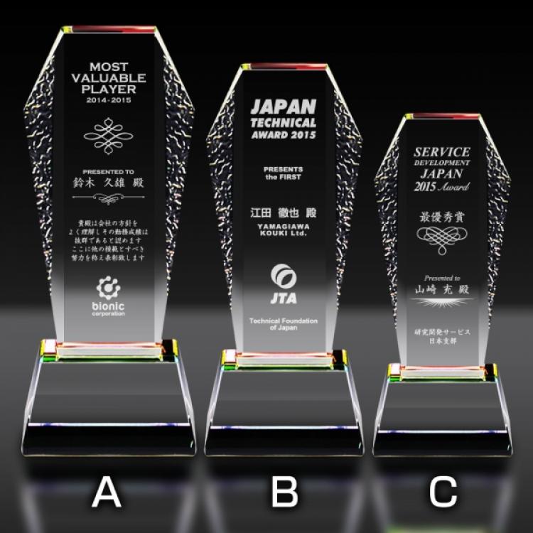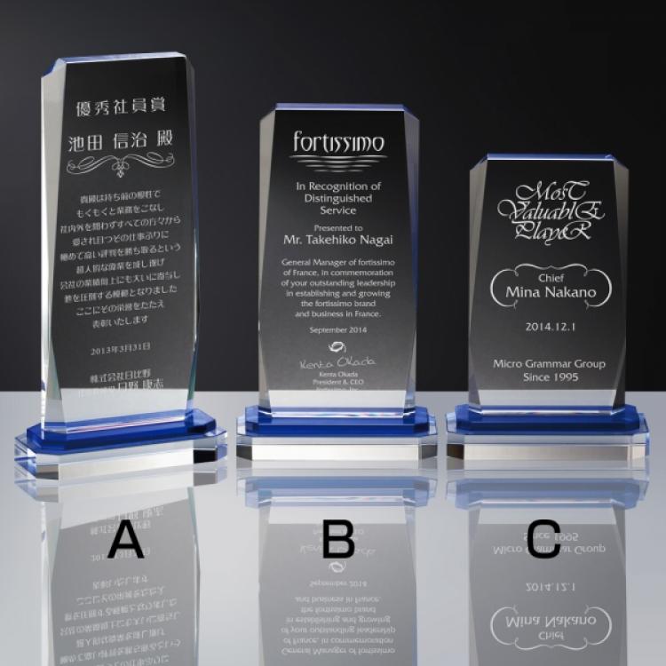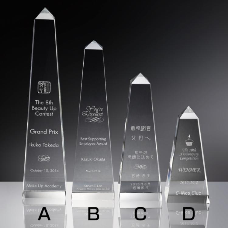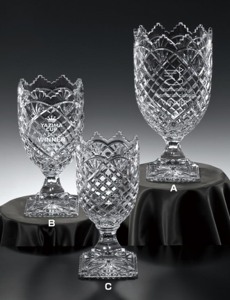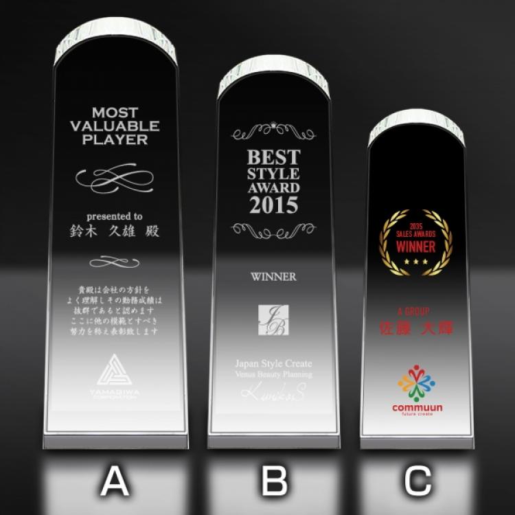 格式の高い表彰シーンに映えるデザイン、実際に手に取って納得の品質を備えたクリスタルトロフィーになります。